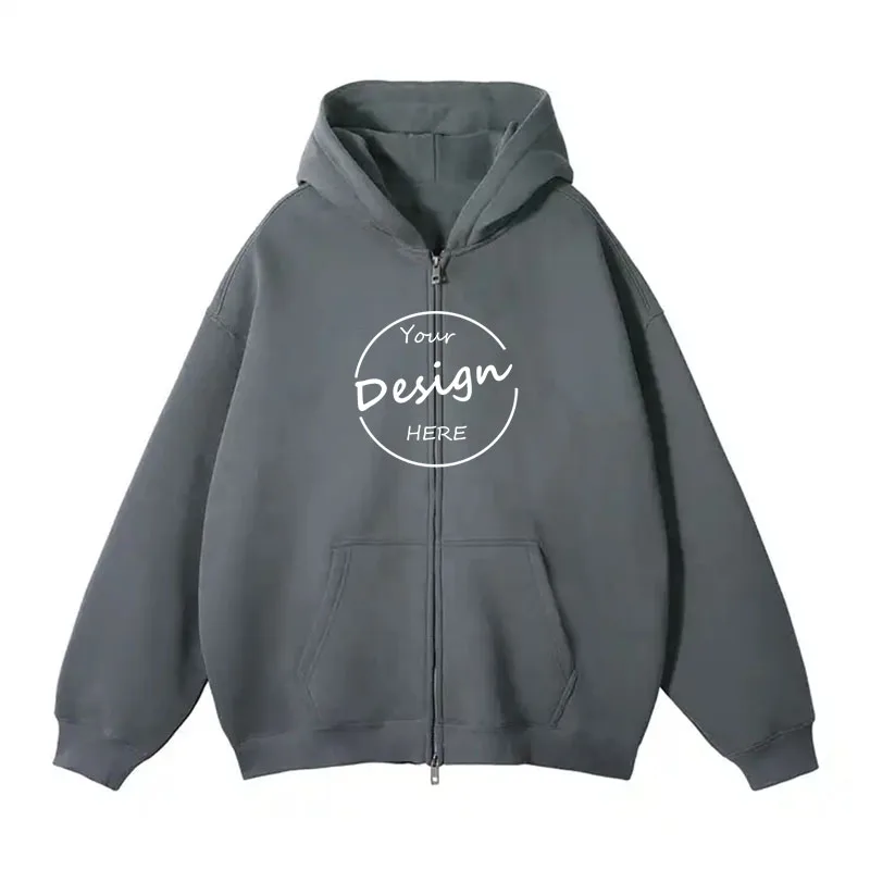 Heavyweight Fleece Cotton Knit Full Zip up Hoodie Men Workout Blank Streetwear Zipper Hoodie Print Logo
