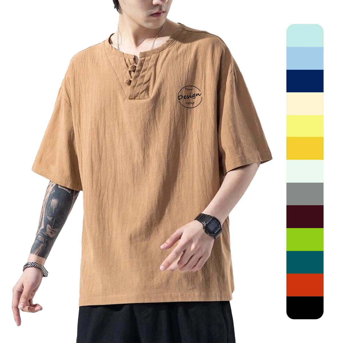 High Quality T-Shirt Embroidery Cotton Linen T Shirt Wholesale Heavyweight Cotton Men Embroidery T Shirt