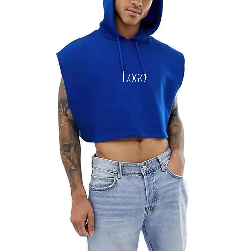 JL-0111A New Trendy Cropped Hoodie Men Gym Clothing Tank Top Hoodies Crop Sleeveless Hoodie Men