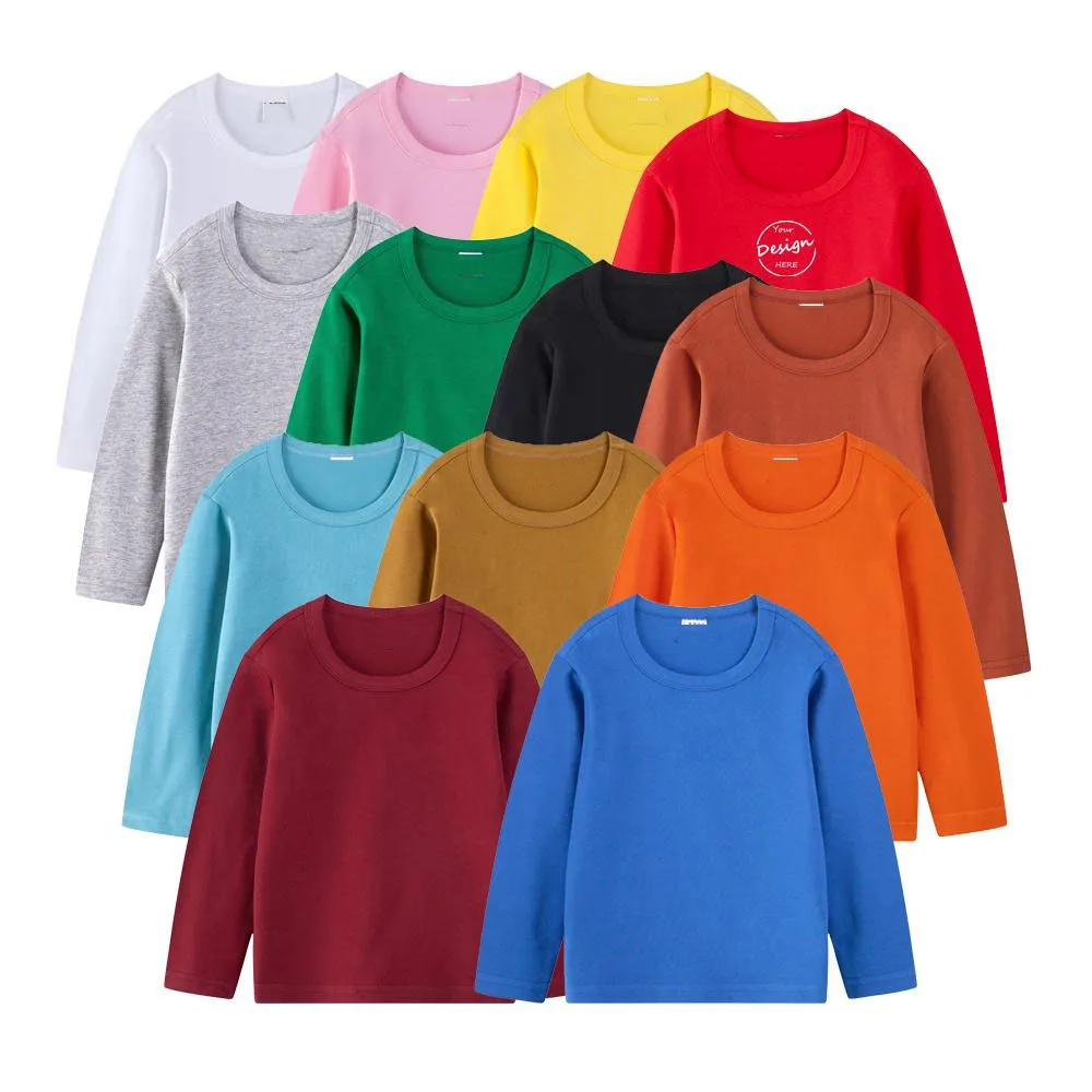 JL-10806 OEM Super 100% Cotton Round Neck Long Sleeve t Shirt Solid Color Blank Sportswear T-shirts