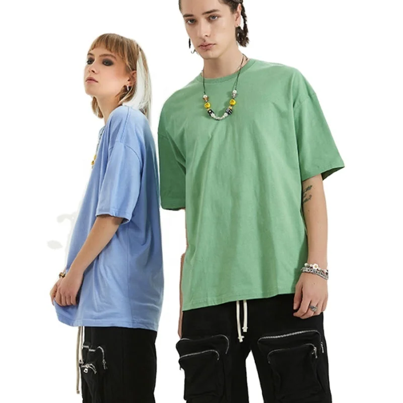 JL-80201 OEM High Quality Unisex Oversized T Shirt Unisex Plain Korean Oversize Tee Green Drop Shoulder T-Shirts for Men