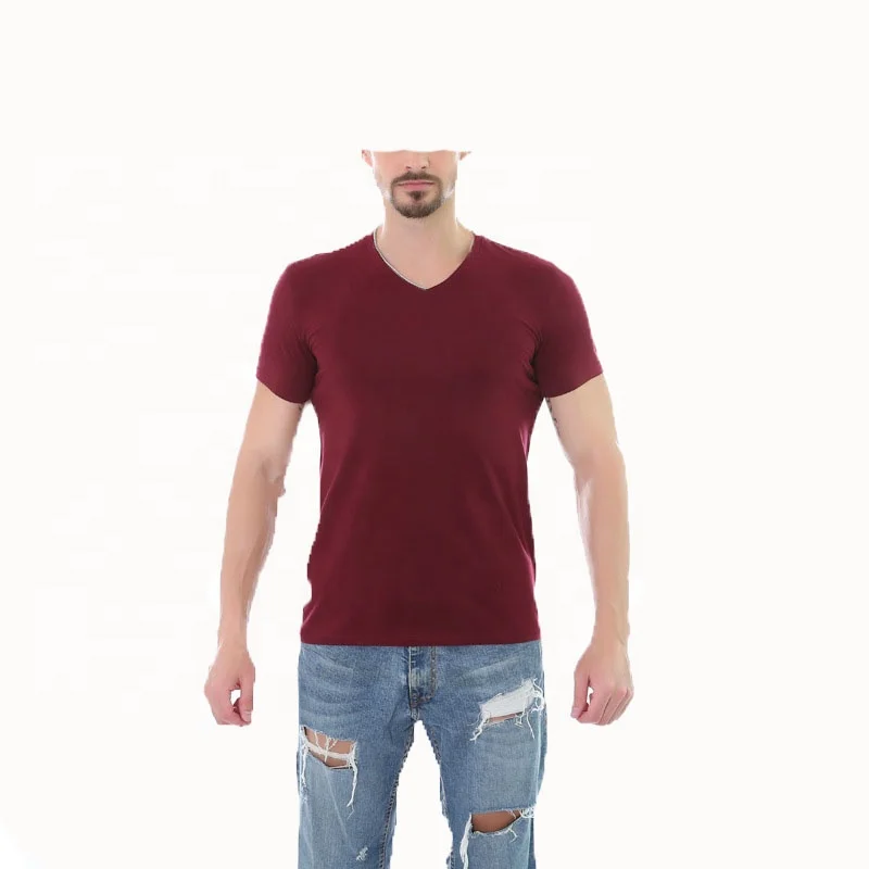 JL-82311 240GSM 65 Polyester 35 Cotton T Shirt Mens T Shirts Blank Slim Fit Burgundy Men V-Neck T-Shirts White Men