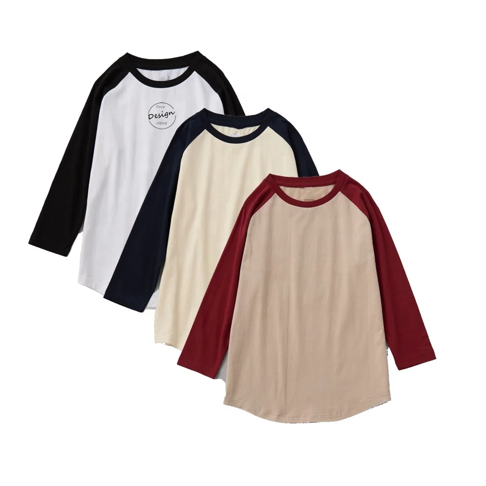 JL0728A High Quality Cotton Raglan T-Shirt Long Sleeve Two Color T Shirt for Men Stylish Full Sleeve Tee