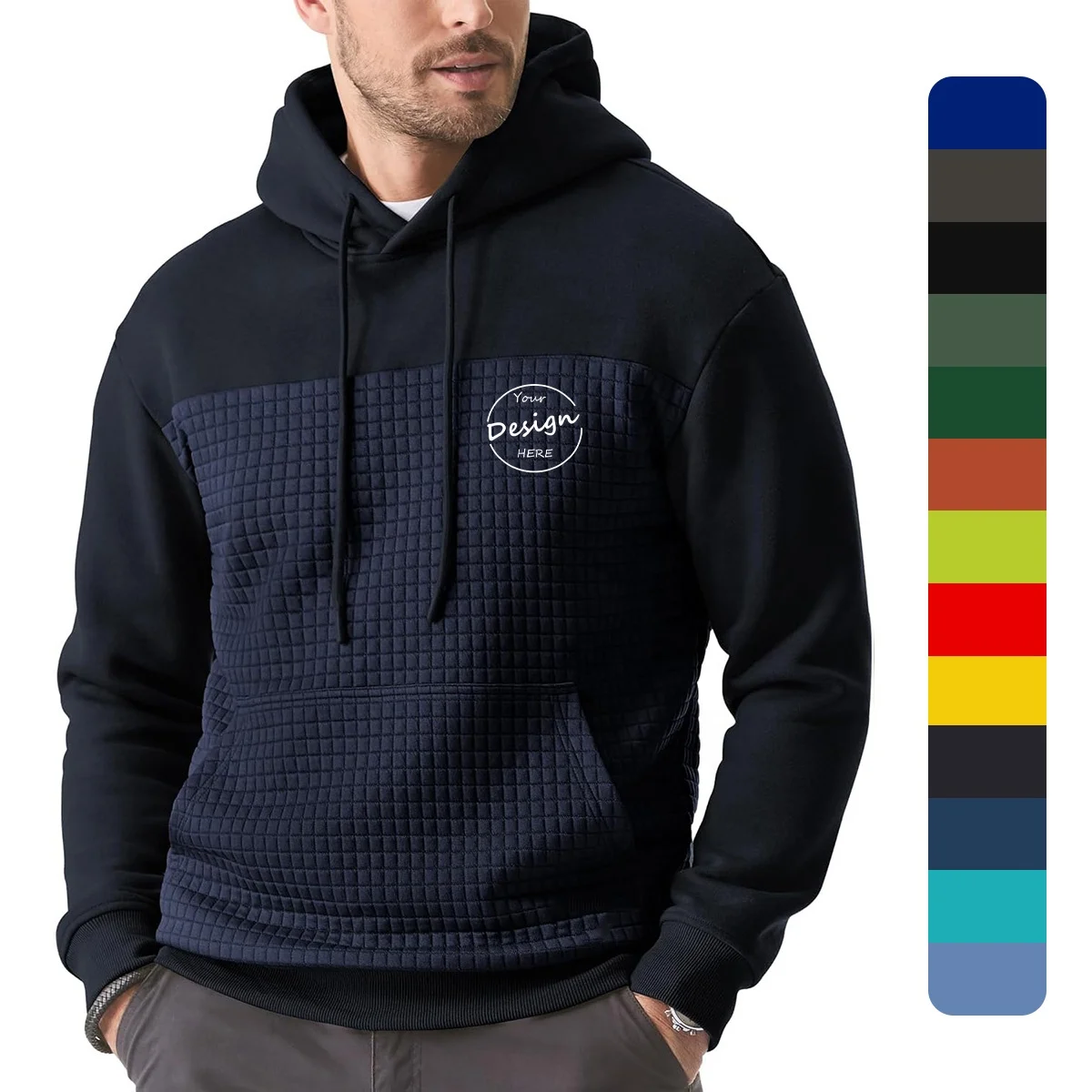 JL108A High Quality Color Block Men Thick Hoodies Embroidery Waffle Fleece Hoodies for Men
