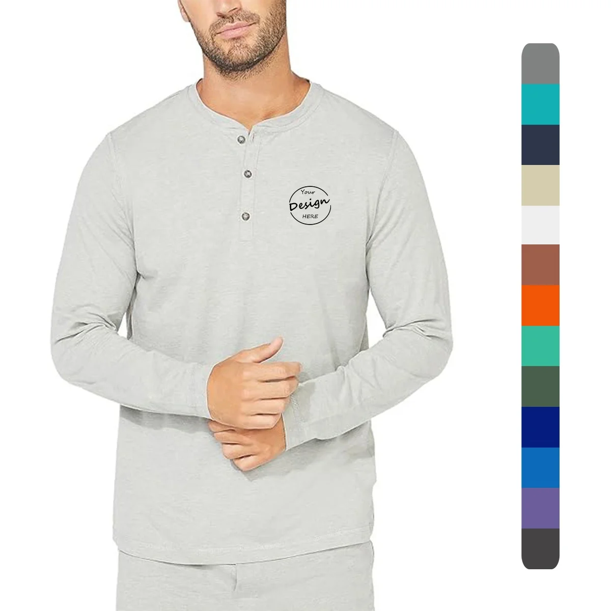 JL1107A Men’s Henley Shirts Causal Heavyweight Comfortable Shirt Long Sleeve Button up T-shirt Tops for Men