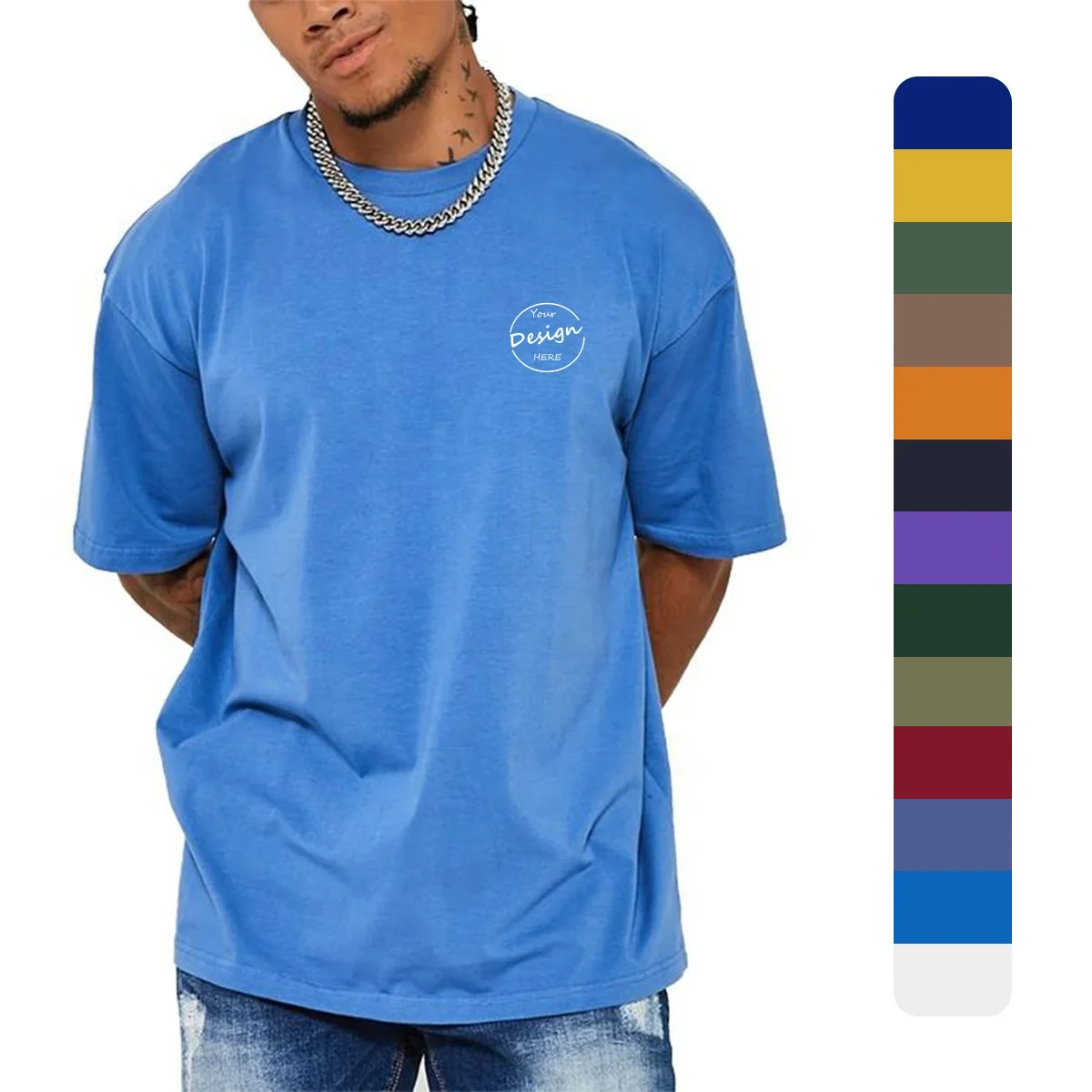 JL1123E Men’s 100 Cotton Oversized Drop Shoulder T-Shirt High Quality Luxury O-Neck T Shirt for Men