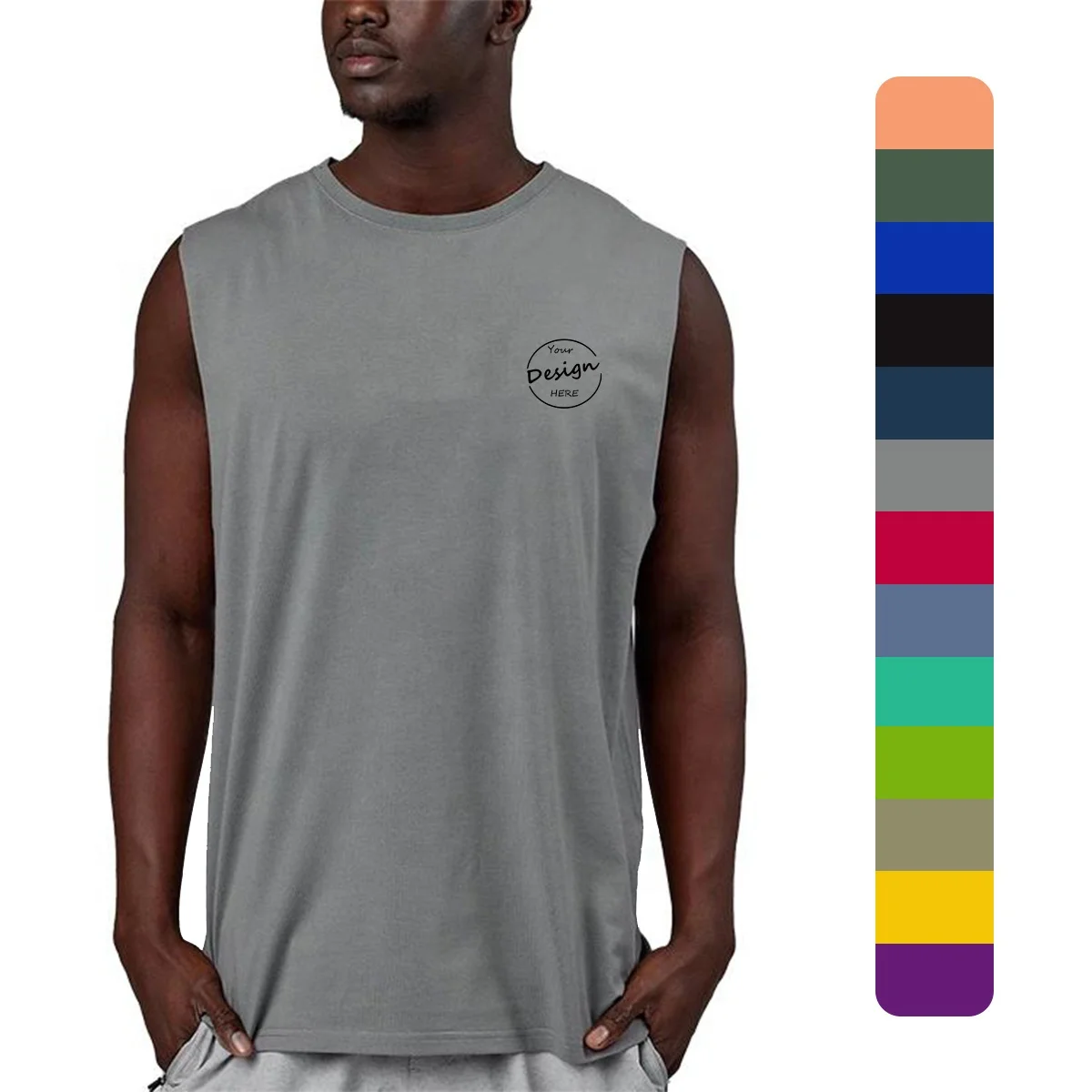 JL1125C Men’s 95% Cotton 5% Elastane Sleeveless Shirts Vintage Loose Fit Gym Fitness Workout Training Tank Top for Men