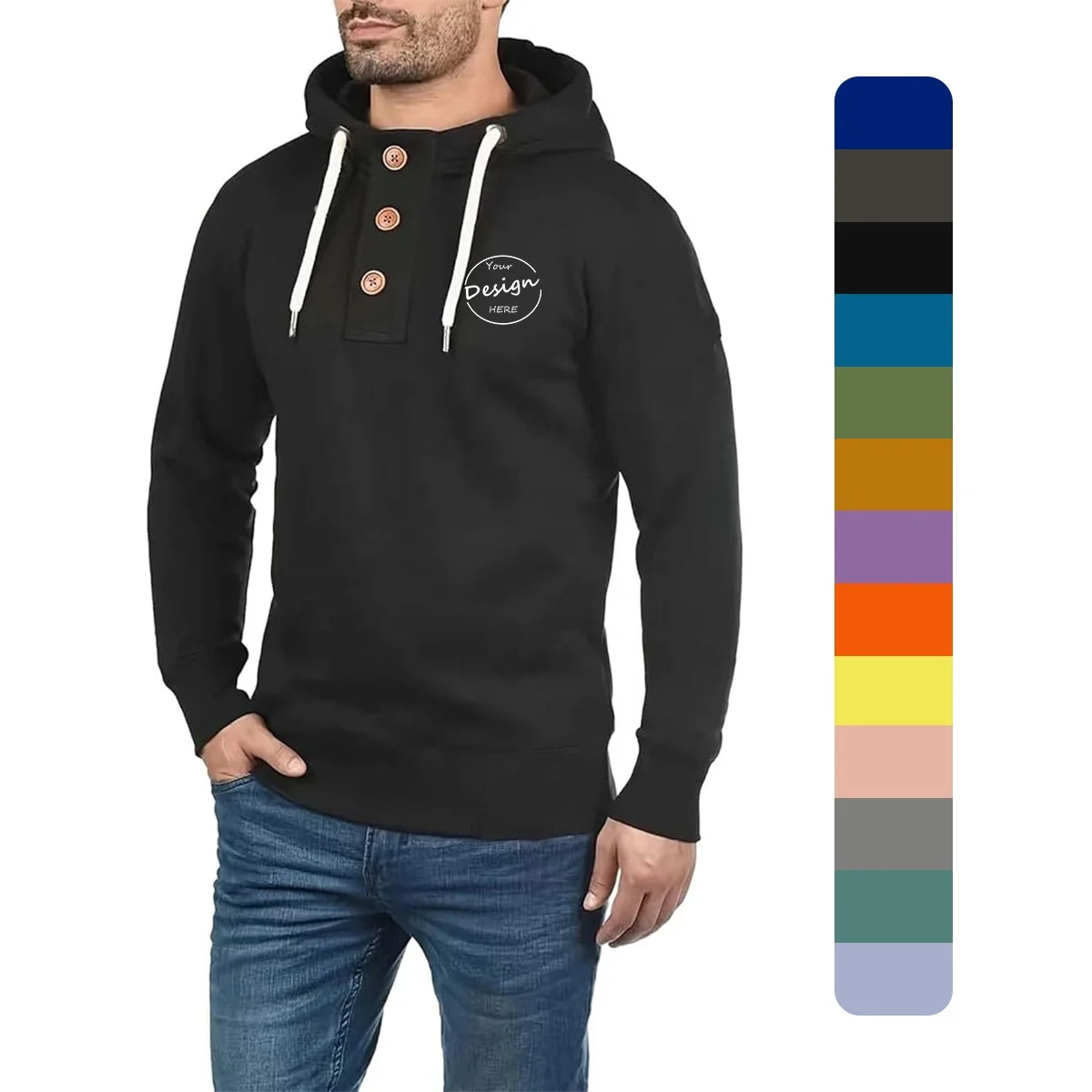 JL1219D High Quality Light Wool Viscose Pullover Hoodie Kangaroo Pocket Men Snap Button Sweatshirt With Hood