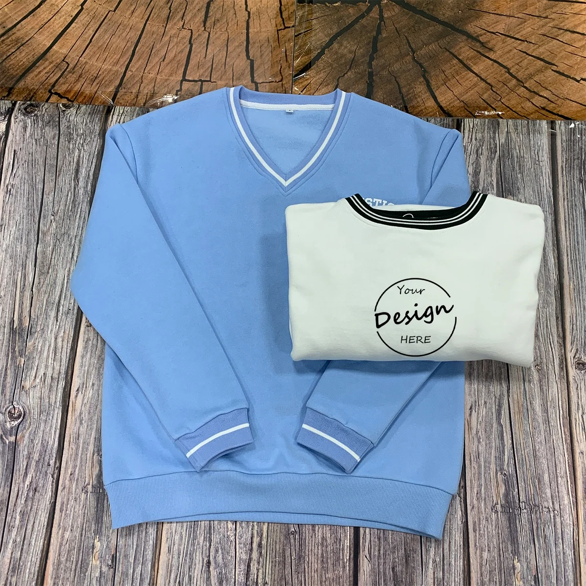 JL217D Screen Printing Cotton Blend Stripe Neckline V Neck Mens Fleece Lining Sweatshirt