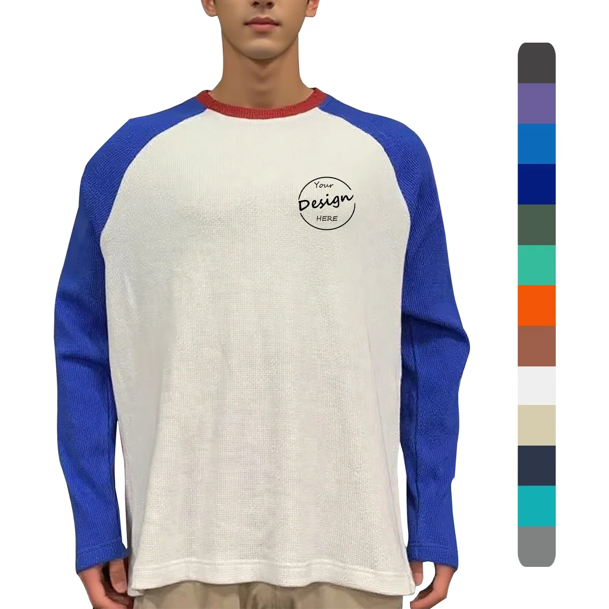 JL87E Color Block Cotton Men’s T-Shirt Round Neck Silk Screen Printing Long Sleeve T-shirt