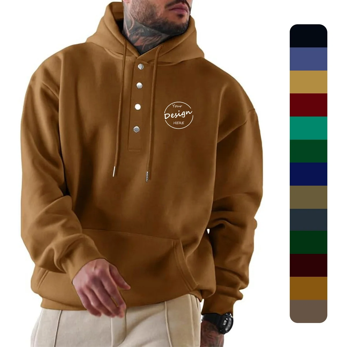 JL927A Stringless Hoodies Quality Thick Cotton Pullover Hoodie No String Kangaroo Pocket Men Snap Button Sweatshirt With Hood
