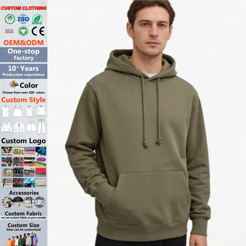 Men’s Heavyweight Sweater High Quality Combed Cotton Fleece Fashion Trendy Blank Hoodie Private Tag