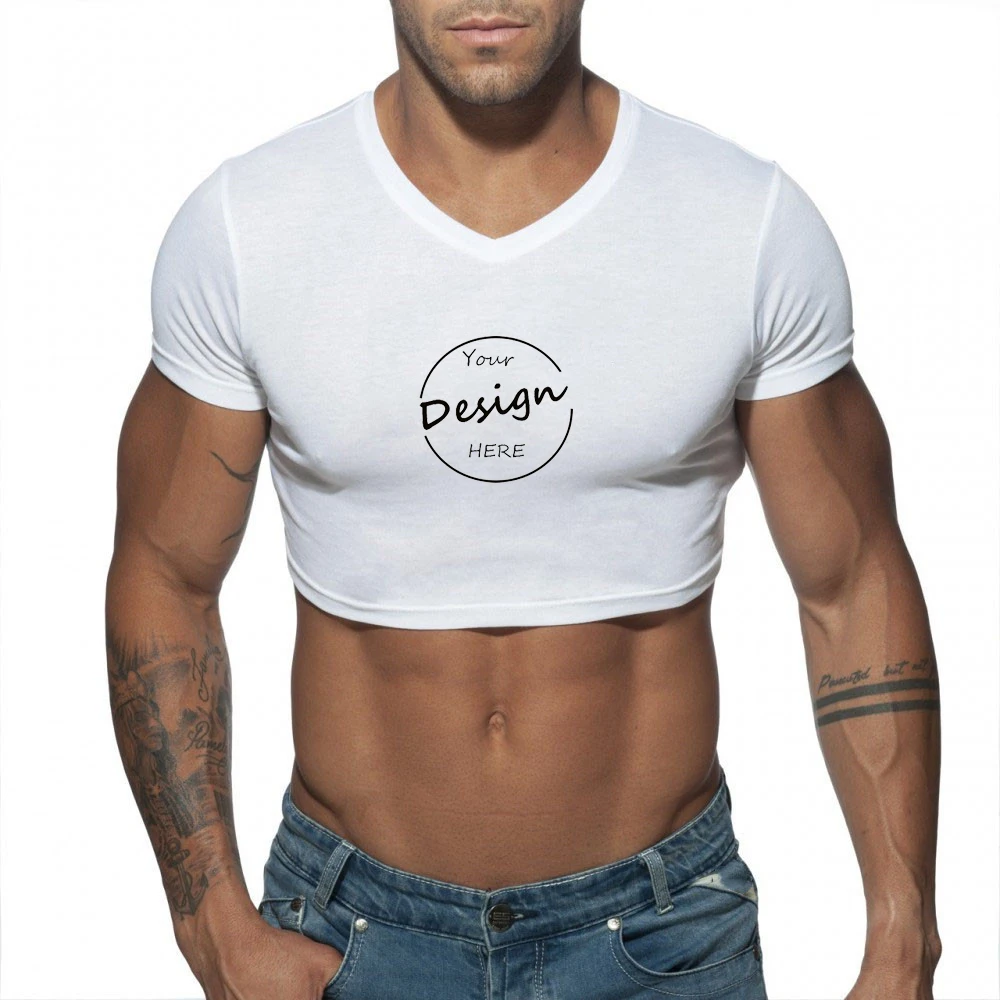 Men’s T-shirt Tight Fight Sports Vest Sweat-absorbing Breathable V Neck Crop Mens Tshirt Solid Color Cropped Tank Top Men