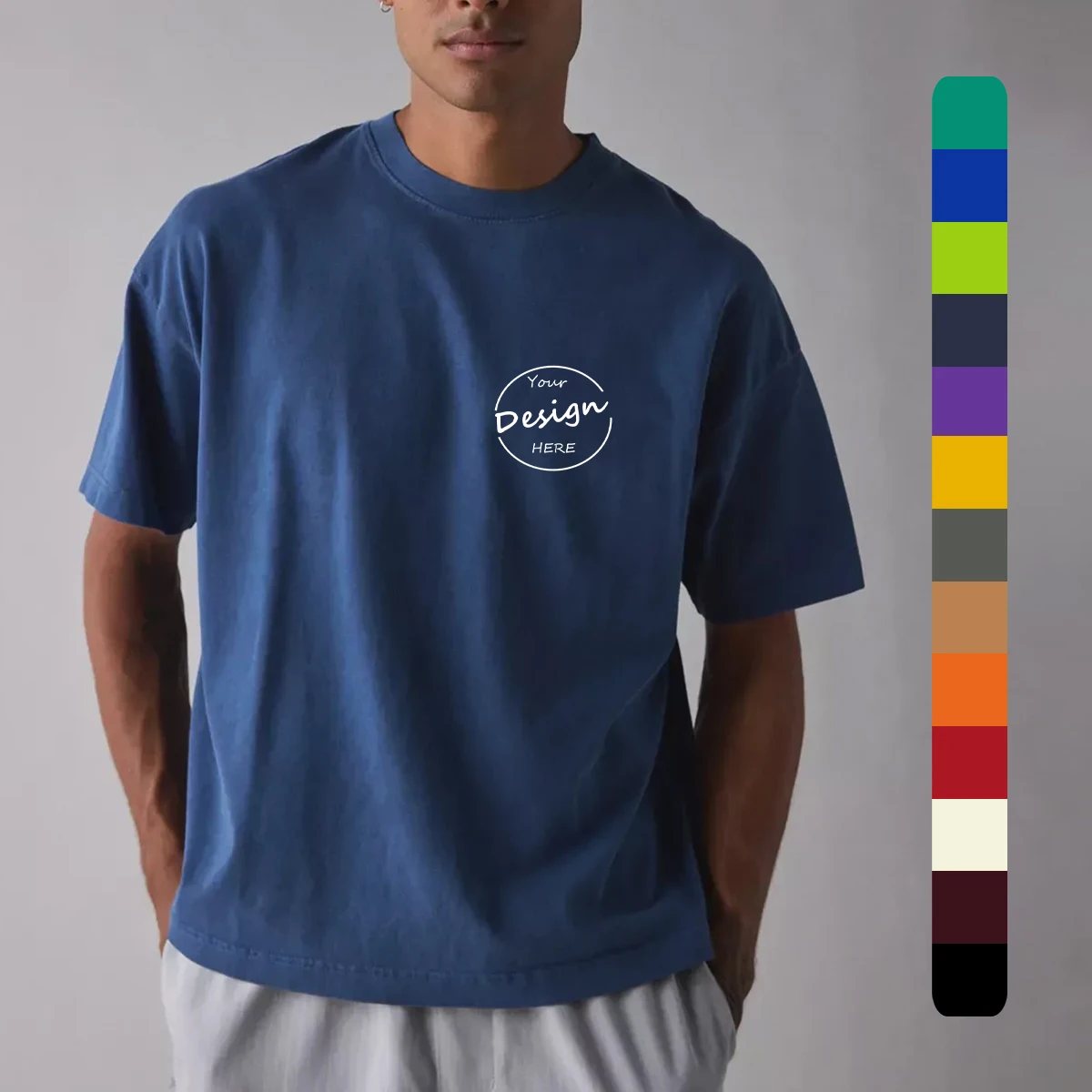 OEM White T Shirt for Men Quality Printing Oversized Drop Shoulder Collar Tshirt for Men Logo