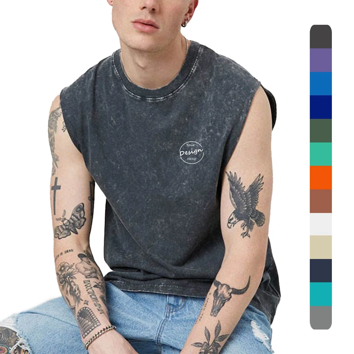 Stringer Cotton Sleeveless Shirt Vintage Loose Fit Cut Off Acid Washed Workout Training Gym Tank Top Men