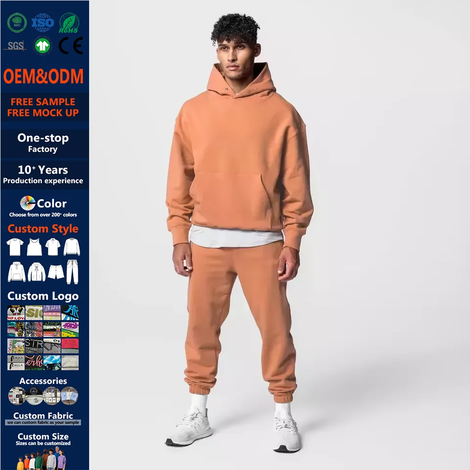 Wholesale Full Zip up Hoodies and Sweatpants Set 3d Embroidery Heavy Weight Men Tracksuit High Quality
